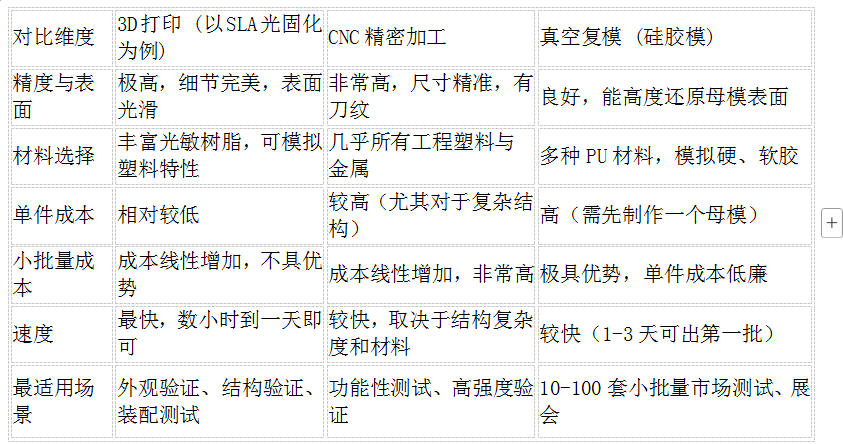 總而言之,模具制造中的快速原型技術(shù)沒有絕對的“最好”,只有“最適合”。將3D打印的速度、CNC的性能和真空復(fù)模的成本優(yōu)勢融會貫通,根據(jù)項目在不同階段的核心目標(biāo),做出智慧的選擇,才能真正為您的產(chǎn)品開發(fā)保駕護(hù)航,贏得寶貴的市場先機(jī)。