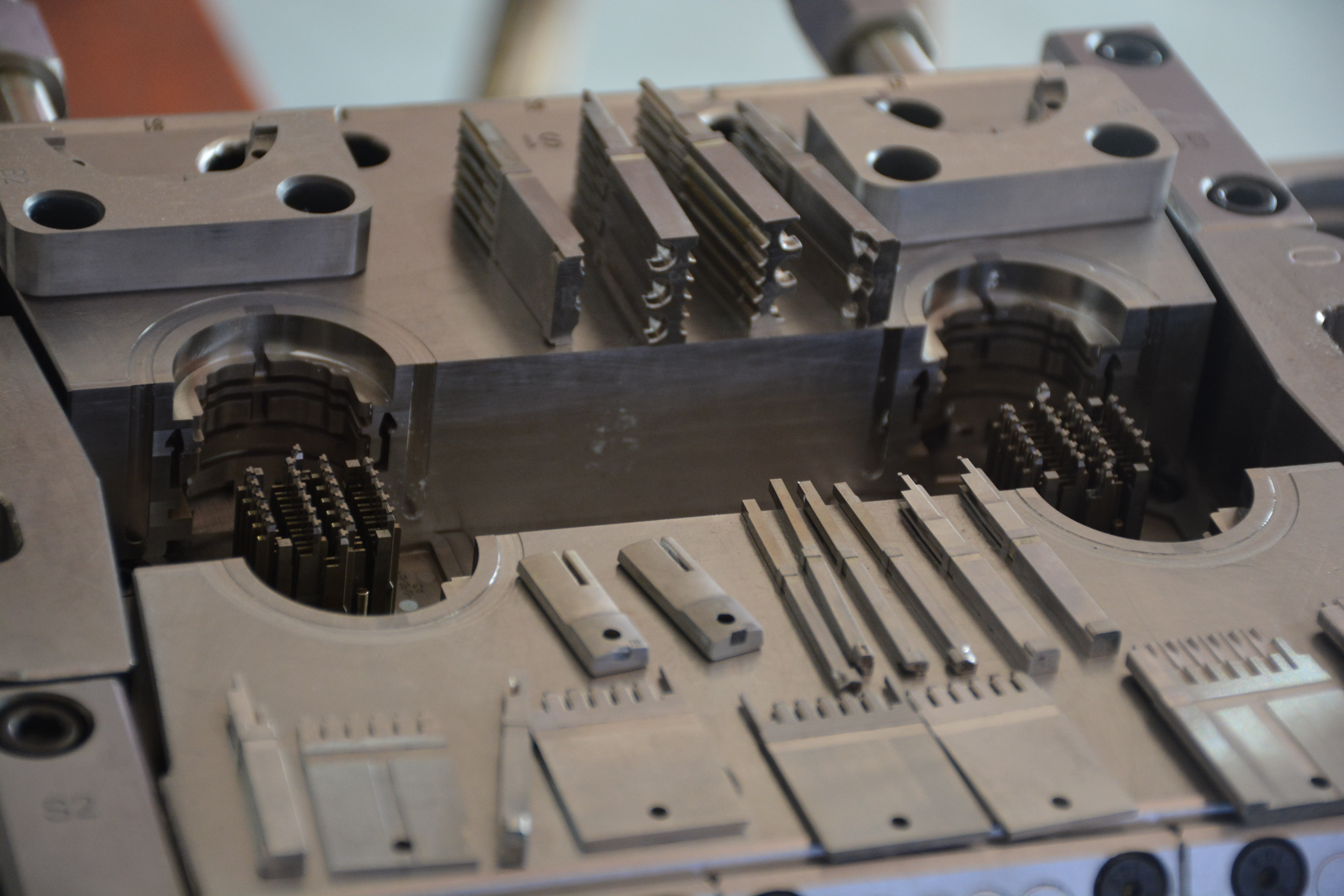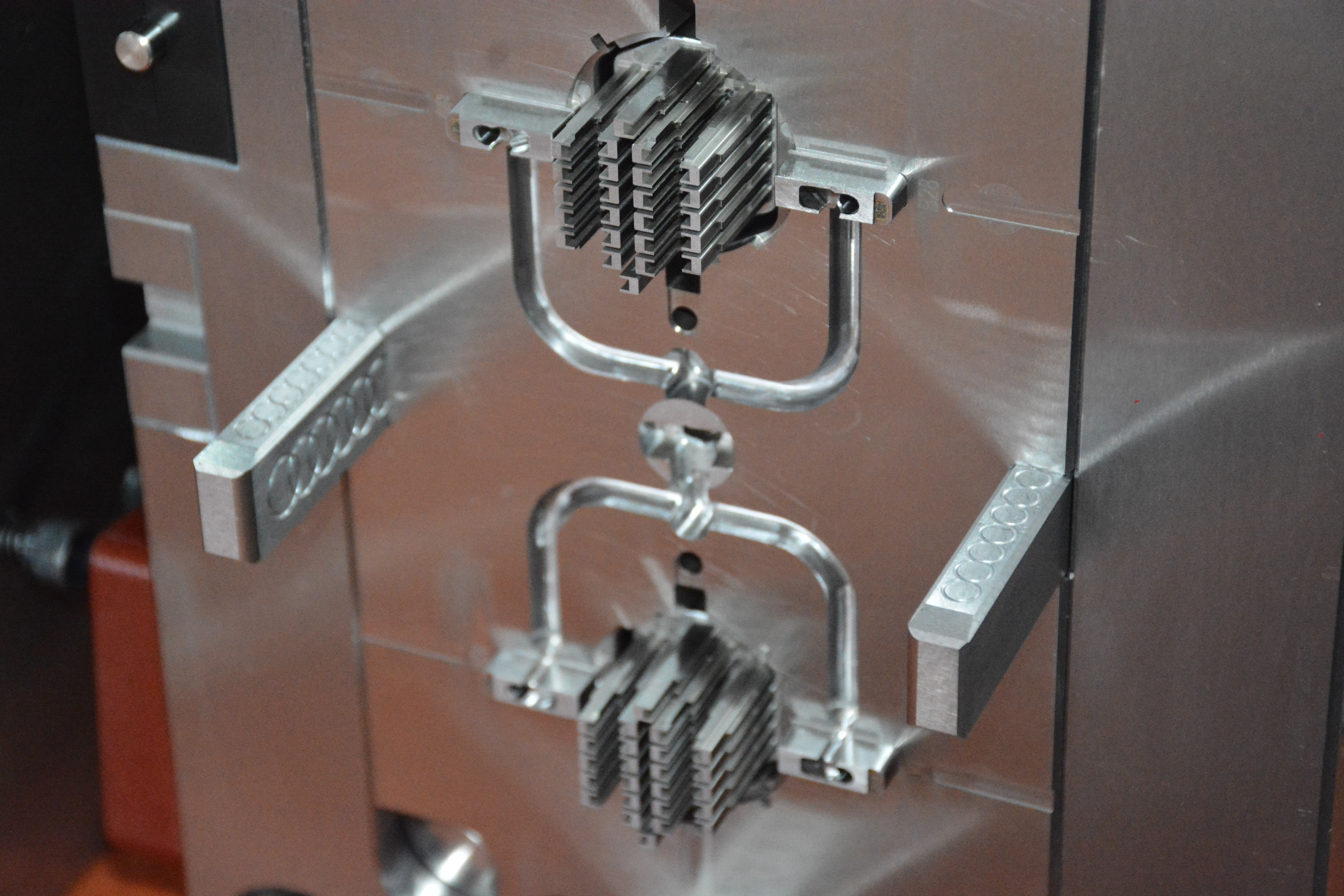 BMW end cap 1000T大型雙色模具,前模頂出需要開(kāi)模同時(shí)沿分型面頂出,合模需要分型面推前模頂出系統(tǒng)回位,經(jīng)過(guò)我們工程團(tuán)隊(duì)前期跟客人提出的有效建議對(duì)產(chǎn)品的優(yōu)化,結(jié)果模具試模一次成功。