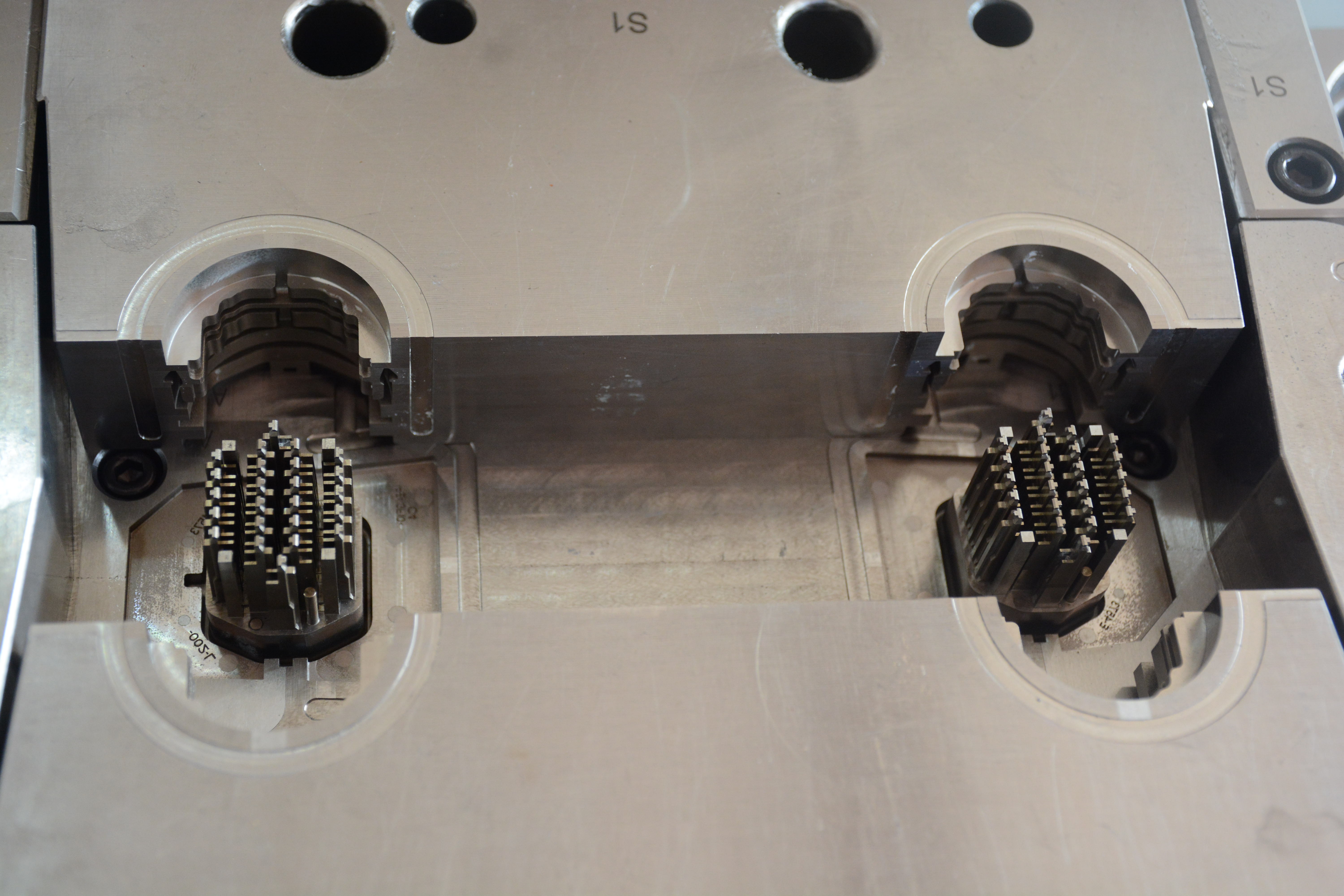 福特電源接頭,我們通過(guò)與客人的檢討,對(duì)產(chǎn)品進(jìn)行優(yōu)化,使產(chǎn)品能夠順利包膠,并吹氣加頂出進(jìn)行產(chǎn)品強(qiáng)脫,完成注塑。